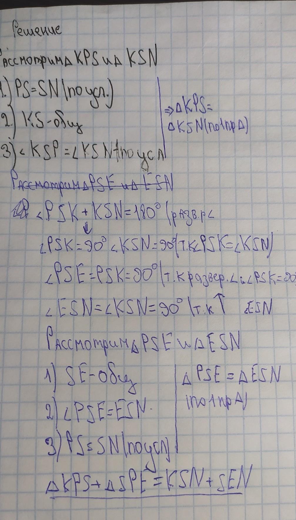 на рис.161 угол ksp = углу ksn, ps=pn. доказать, что треугольник kpe = треугольнику kne