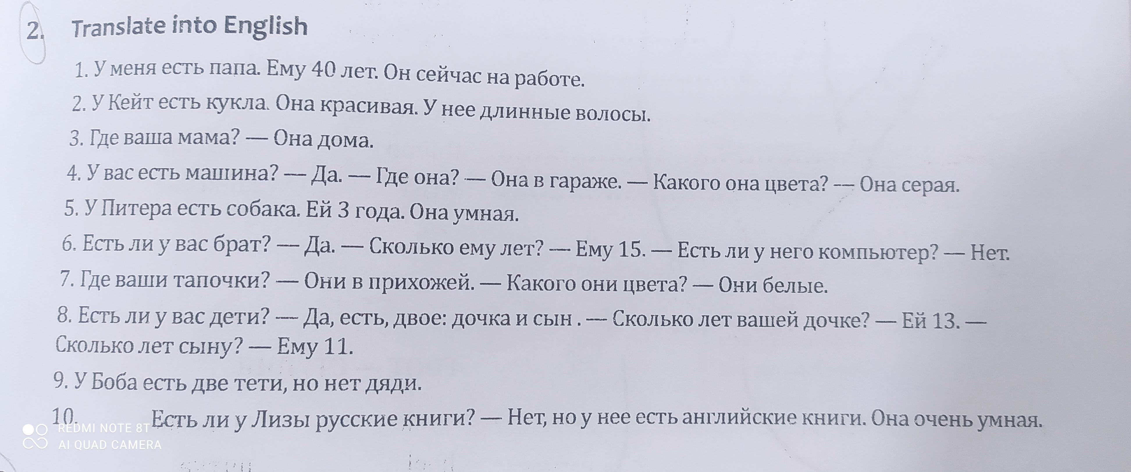 8. Do you have children? Yes, I have two children: a daughter and a son. How old is your daughter? She is 13 years old. How old is your son. He is 11 years old.