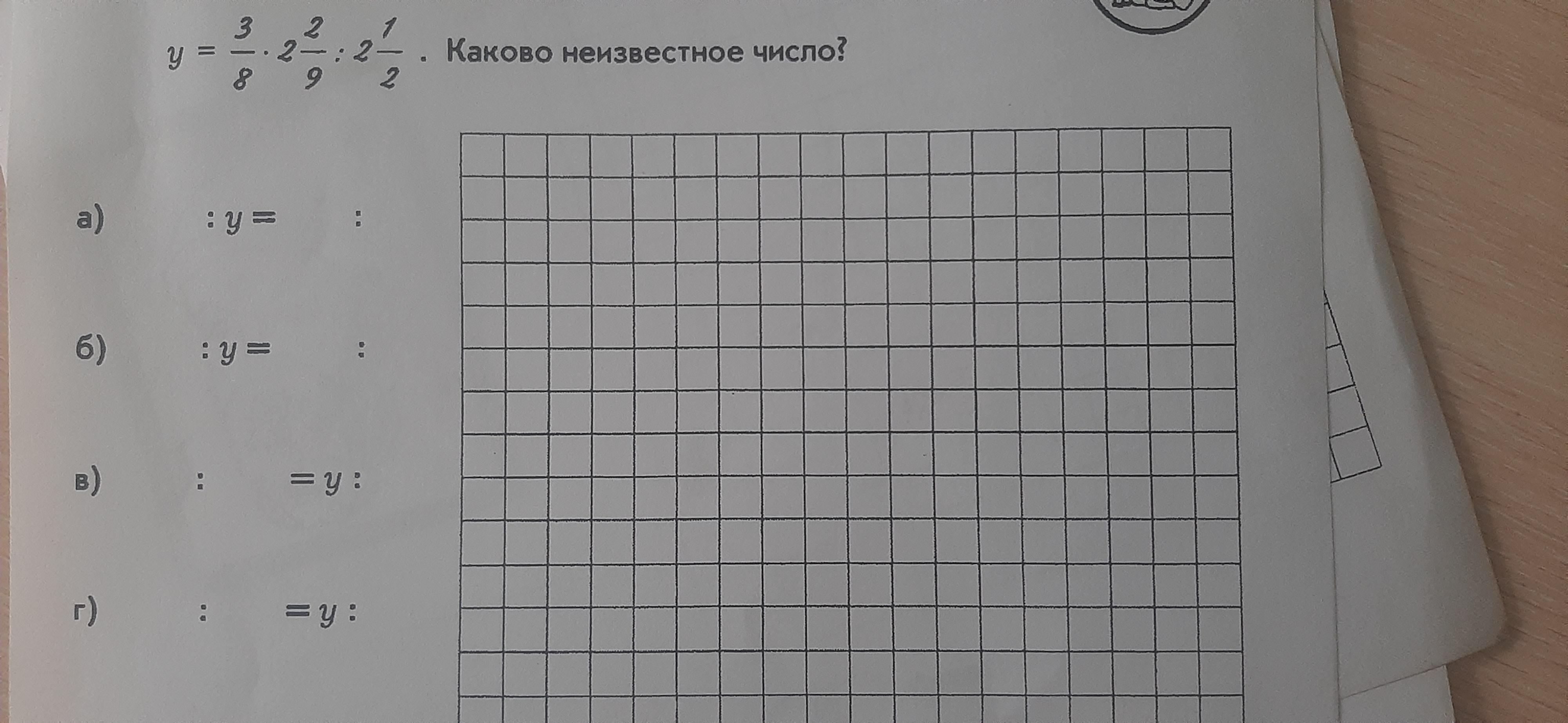 2 1/2 * у = 3/8 * 2 2/9 - произведение средних членов = произведению крайних членов