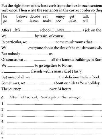 be believe decide eat enjoy get talk go last leave- make see take tell