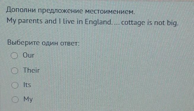 My parents and I live in England. ... cottage is not big. 1) Our 2) Their 3) Its 4) My