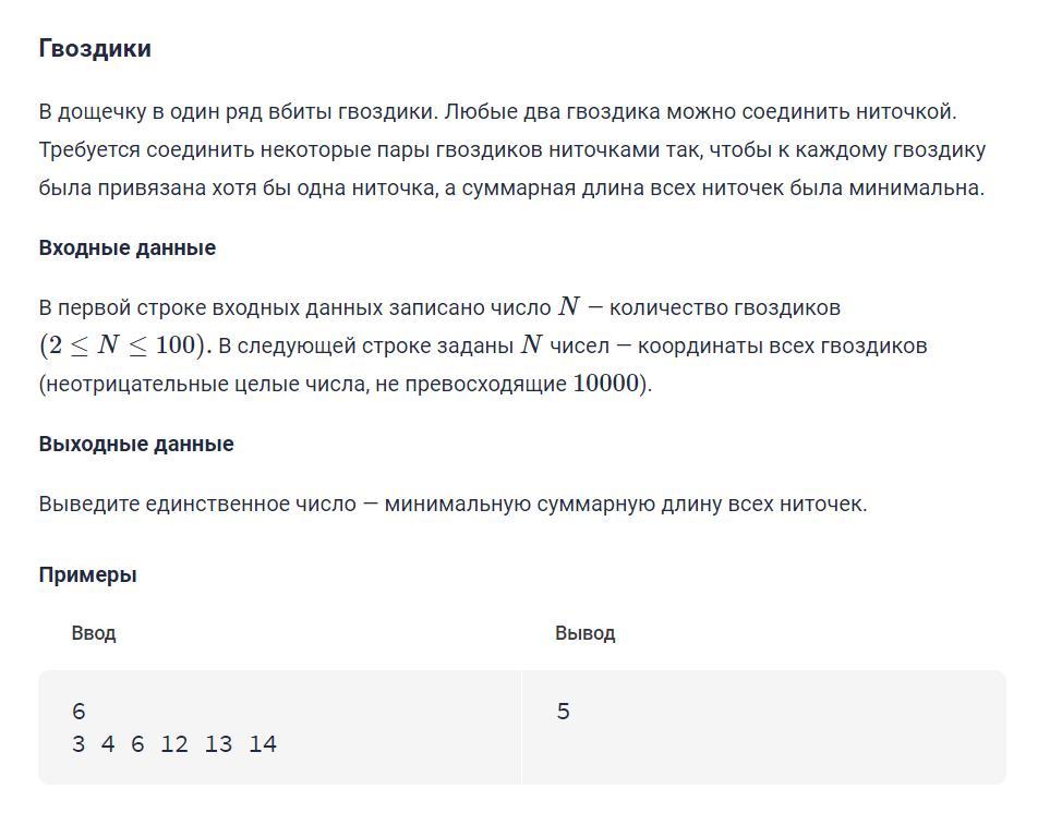 if (abs(nails[i] - nails[j]) < min && i != j) {