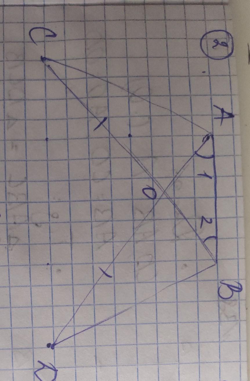 ΔACB = ΔBDA . Дійсно , ΔАОВ - рівнобедрений ( ∠1 = ∠2 ) , тому