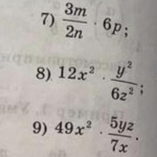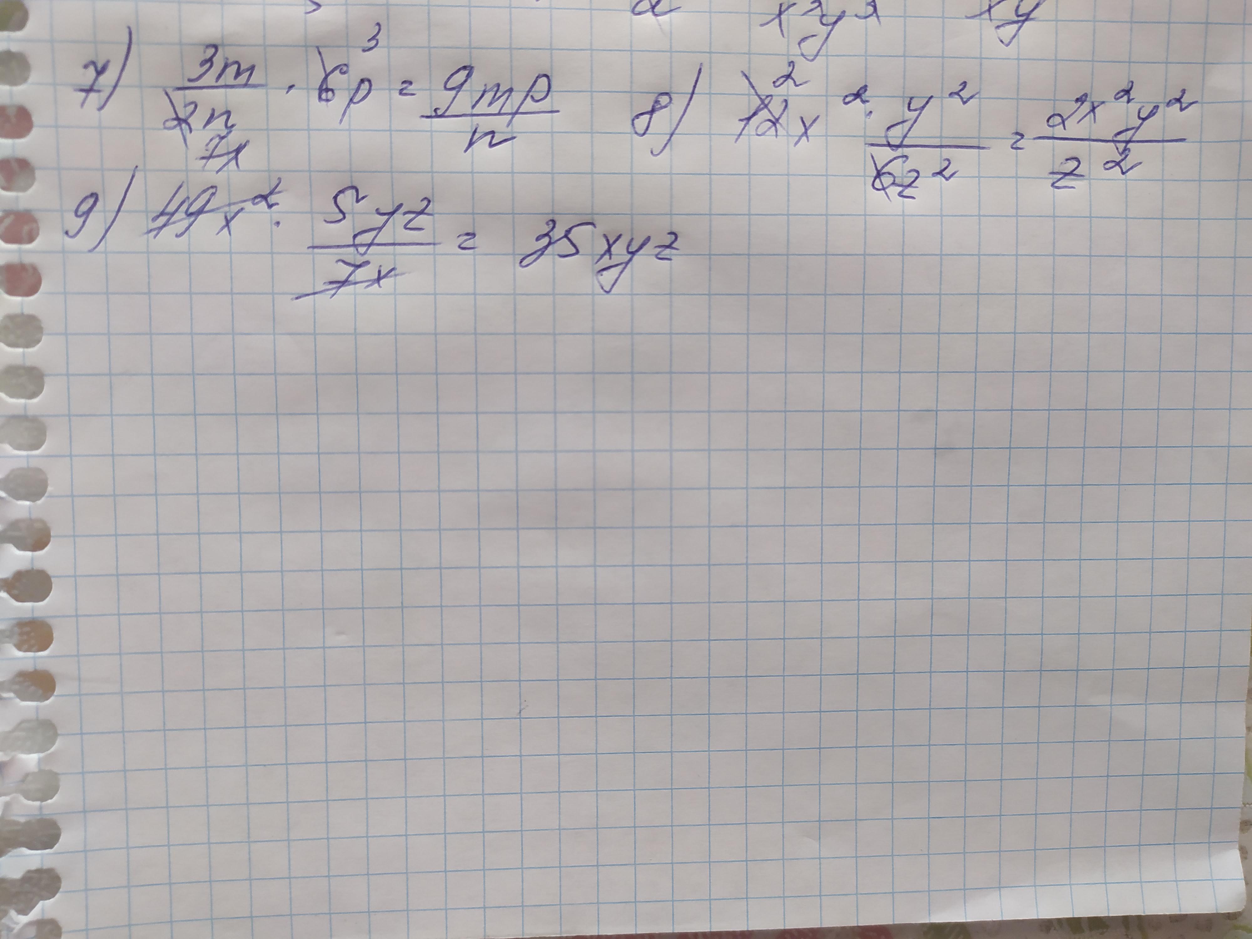 9) 49x²*5yz/7x=7x*5yz=35xyz.