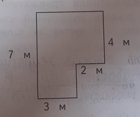 Ответ:Условно делим фигуру на два прямоугольника. Первый: 2м на 4м, второй : 3м на 7м. Вычисляем площади обеих фигур и прибавляем их.
