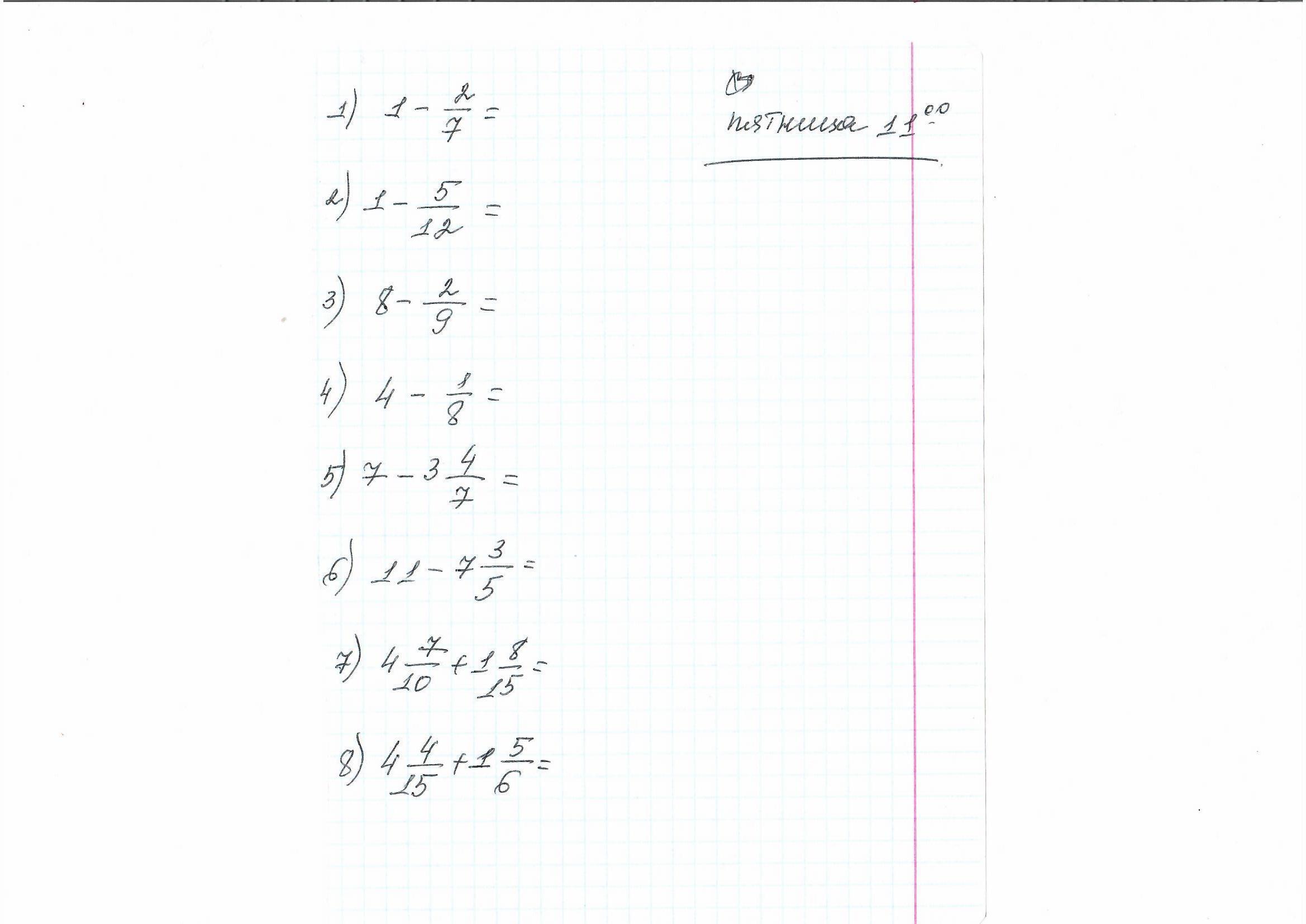 6) 11- 7 3/5 = 10 5/5 - 7 3/5 = 3 2/5