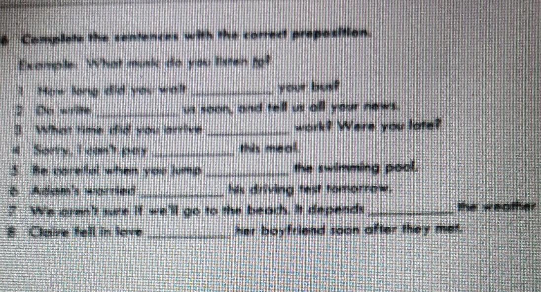 = youe bea? 4 Commelele the centences wh the corrmet arcpoulilan. twee what reale de meten te Hoe leg #dre - cand tell in all your that ਅਵਾ o = Were you lotet Sensor Til Le corclul when you are the swimming pool & Adem verrice Nu deiving textmate We ere) et selle the treach. It depends the Clare le lleve her boyfriend soon after they met