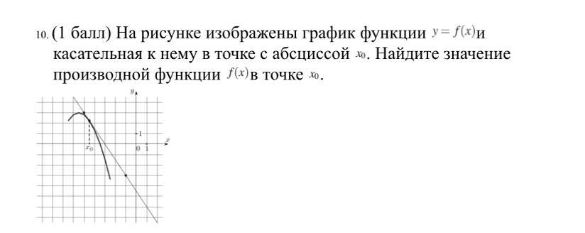 Геометрический смысл производной заключается в том, что ее значение в данной точке первозданной равняется тангенсу угла наклона касательной к этой точке. В данном случае просто нужно немного исследовать линейную функцию на рисунке. Это можно сделать двумя путями, но выберем более продвинутый. Тангенс угла наклона это есть коэффициент наклона, то есть скорость роста функции, поэтому нам лишь достаточно посчитать, насколько увеличилось значение функции на определенном промежутке. На данном рисунке даже есть точки, поэтому все предельно просто. В пределах отрезка [-5;-1] значение уменьшилось на 6 за 4 пункта. Таким образом, -6/4=-1.5 Значение отрицательное, так как в данной точке функции она убывает.