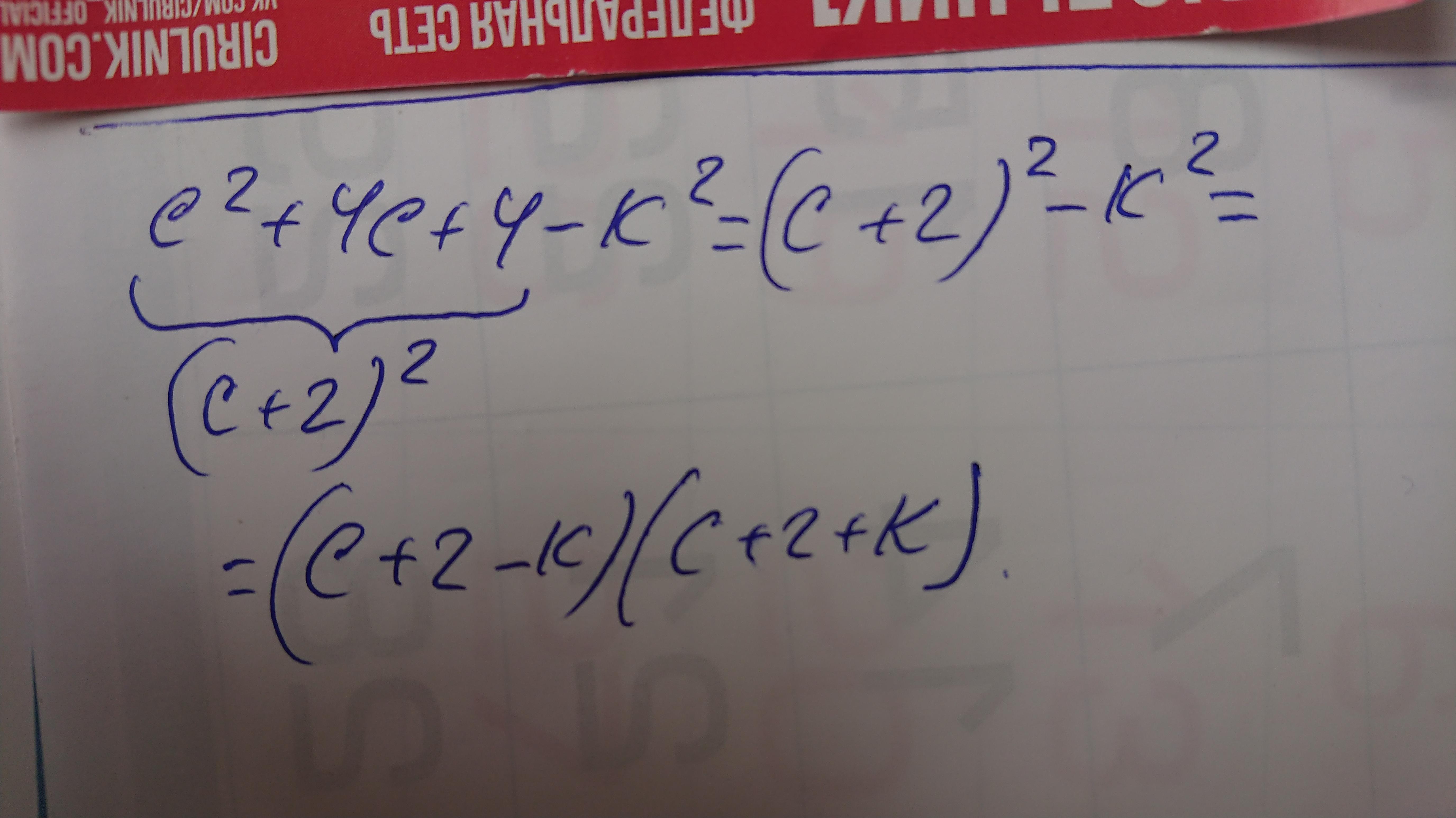 Ответ: (с+2-к)*(с+2+к), см фото.