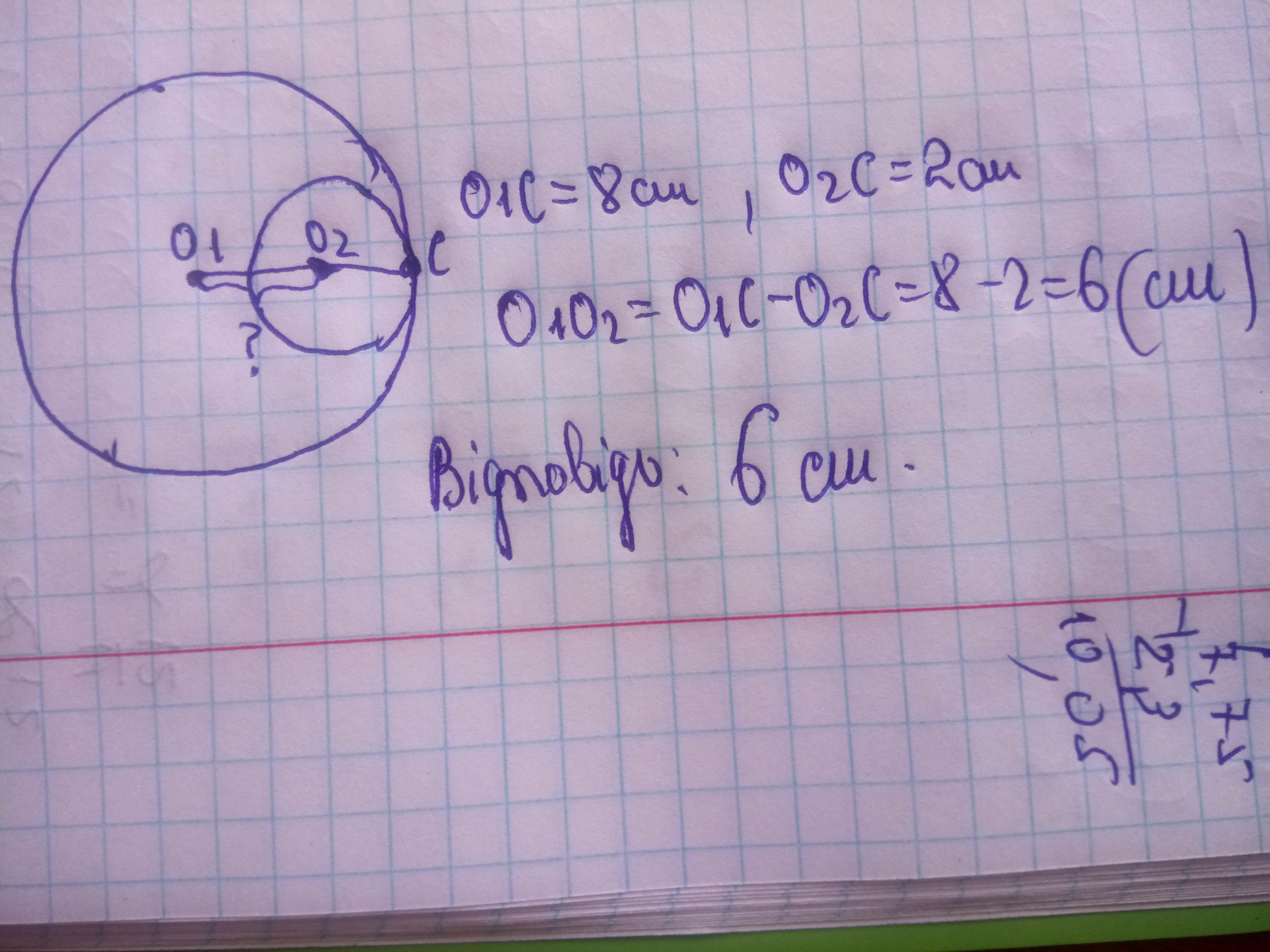 Дано кола із центрами в точках О1 і О2, що мають внутрішній дотик у точці С. Знайдіть відстань О1 О2, якщо О1С=8 см; О2С=2 пж помогите мне