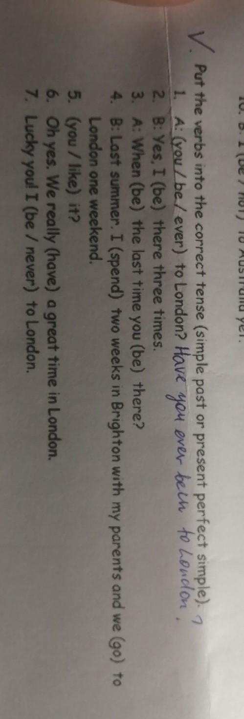 - B: Last summer. I spent two weeks in Brighton with my parents and we went to London one weekend.