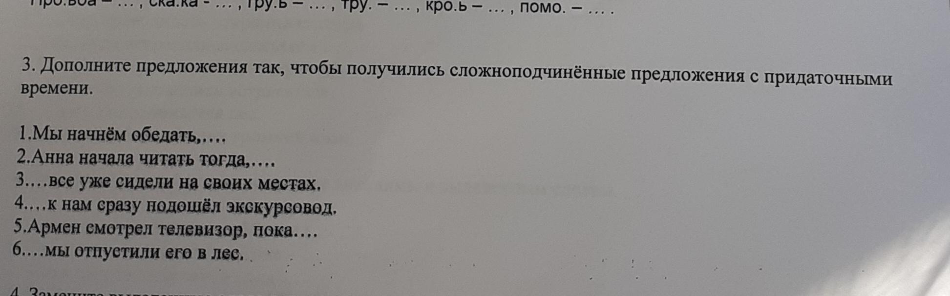 4. (Когда мы вышли из автобуса), [к нам сразу подошел экскурсовод].