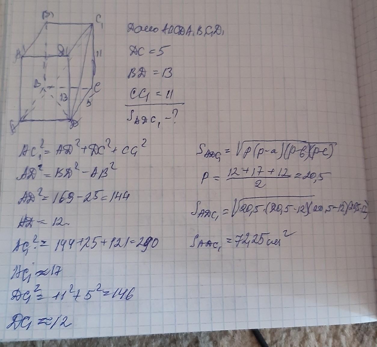 5 см, CC1 = 11 см. Знайдіть площу трикутника ADC1