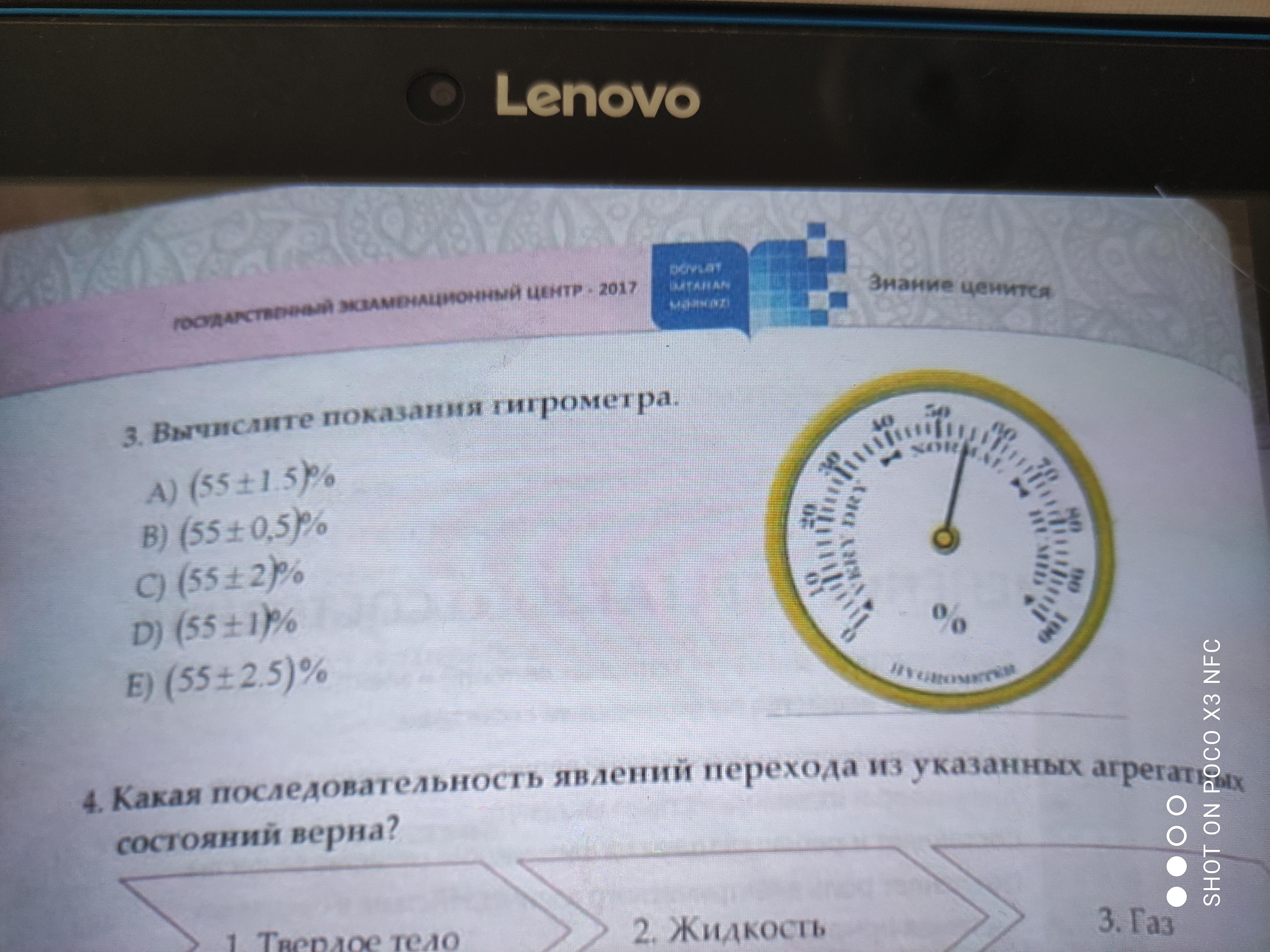 Стрелка посредине, между 60 и 55. То есть, 55. И ещё учтём погрешность 0.5 %