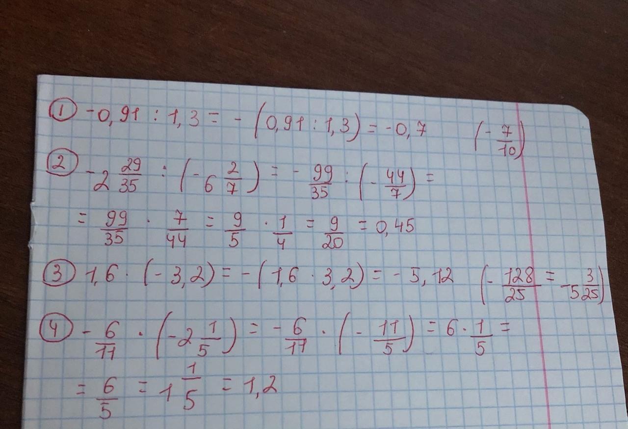Умножение и деление рациональных чисел