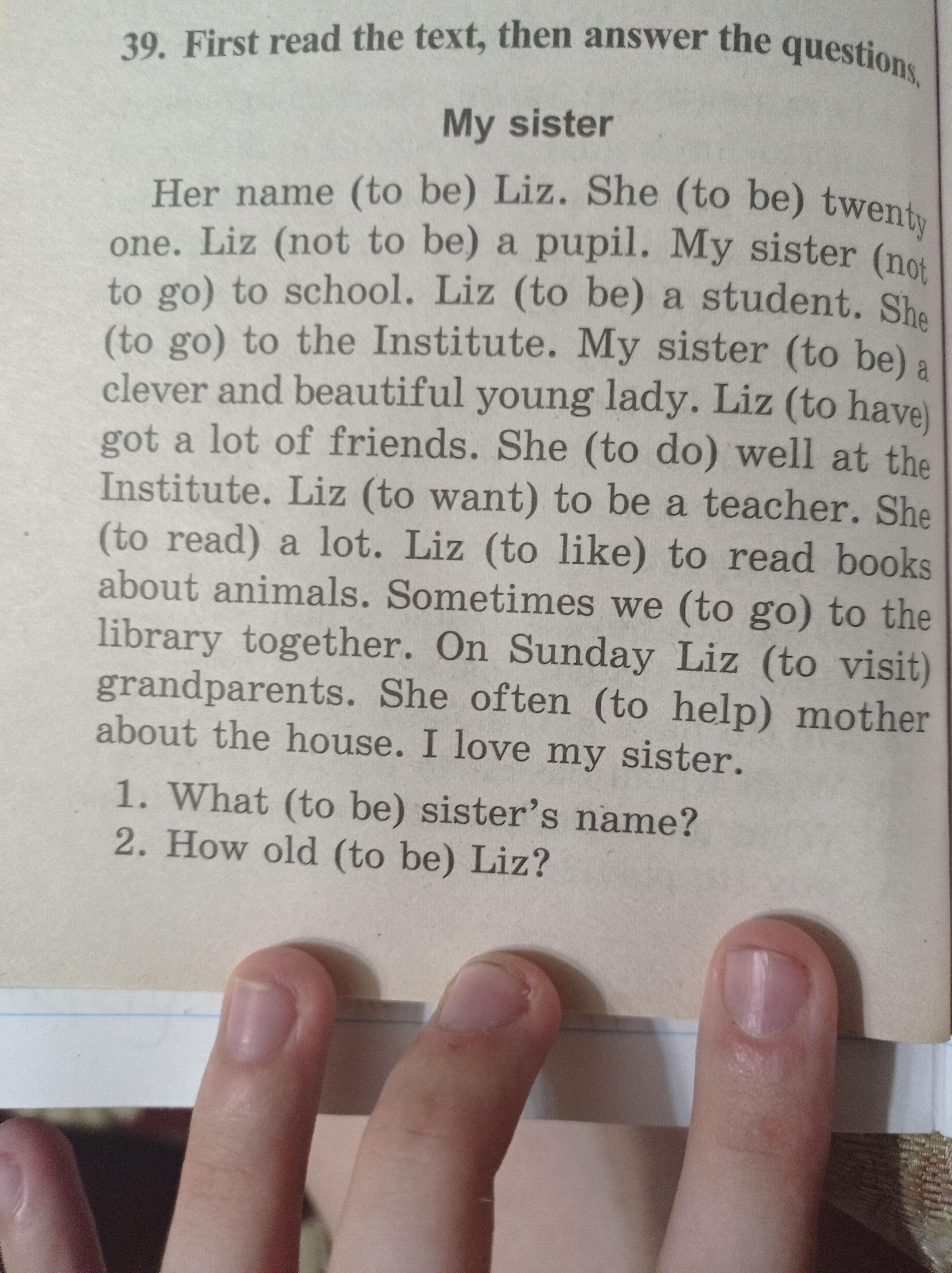 - What is sister's name? — Her name is Liz.