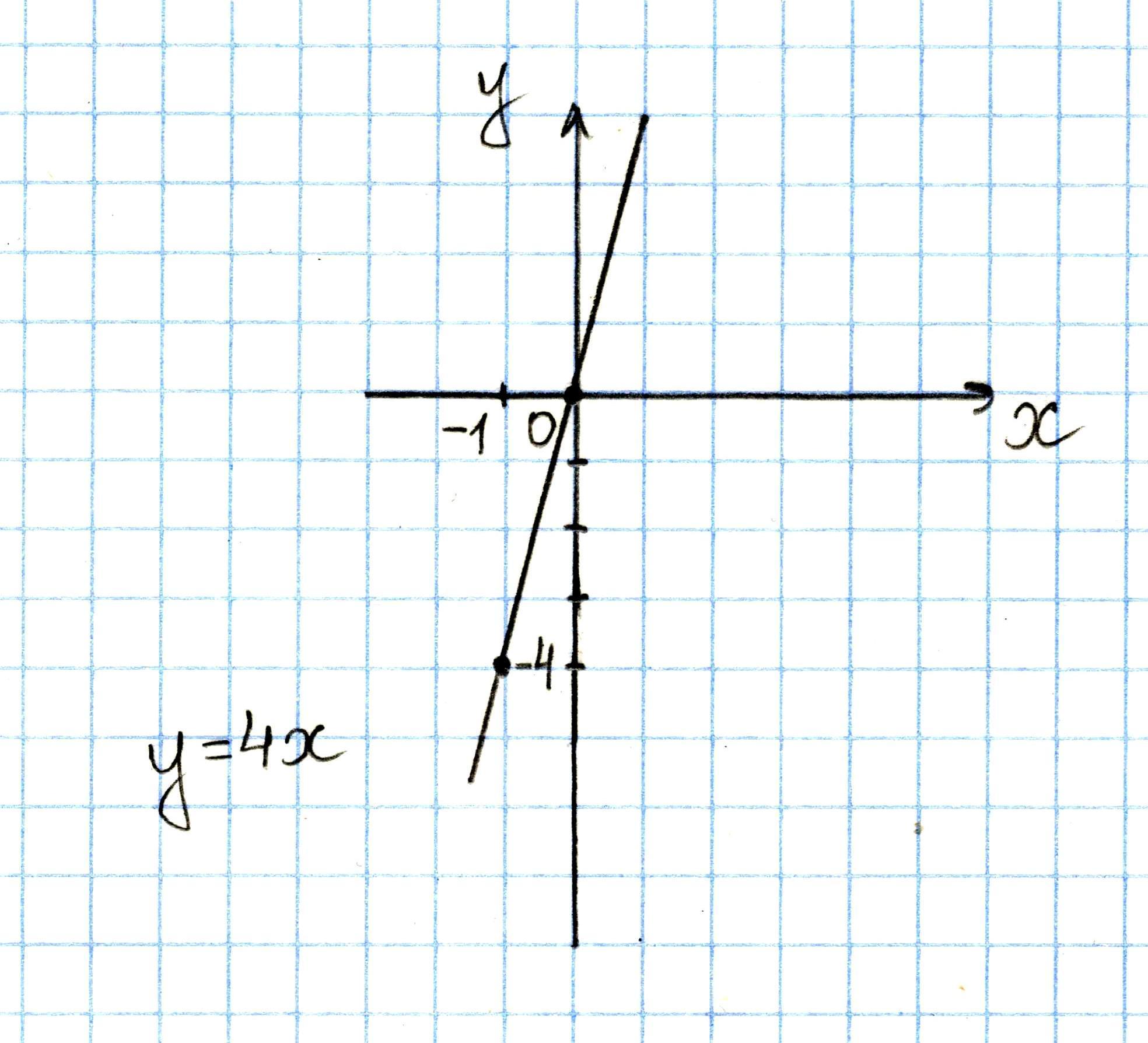 Для построения графика прямой пропорциональности нам понадобятся две точки: начало координат и точка (–1 ; –4):
