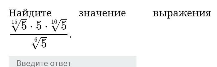 Даний вираз дорівнює . . . = [ 5^(1/15) *5 * 5^(1/10) ]/5^( 1/6) =