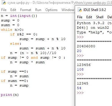 В программу вводится целое число n (n>0) с клавиатуры. Необходимо вывести произведение сумм его четных и нечетных цифр. Если одна из сумм равна нулю, то необходимо вывести вторую. На питоне!
