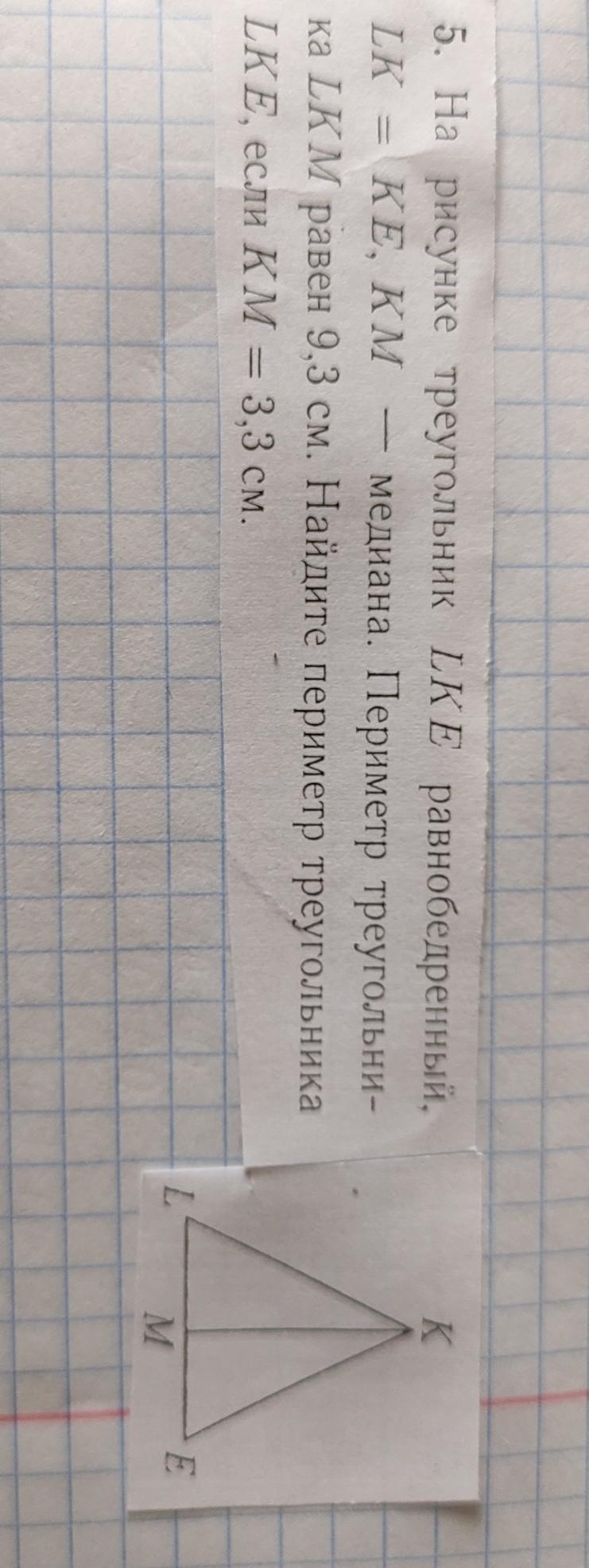 Поскольку LKE - равнобедренный треугольник, то LK+LM=ME+KE. Следовательно чтобы найти его периметр, достаточно найти чему равно LK+LM.