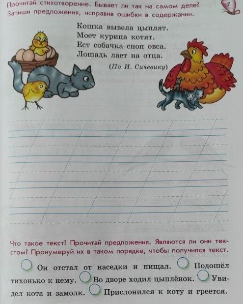 Прочитай стихотворение. Бывает ли так на самом деле? Запиши предложения, исправив ошибки в содержании.