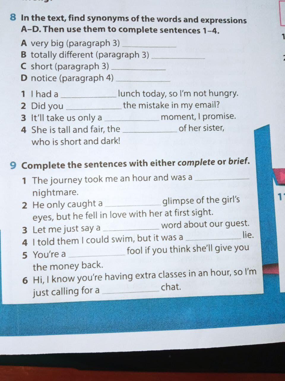 6. Hi, I know you’re having extra classes in an hour, so I'm just calling for a brief chat.