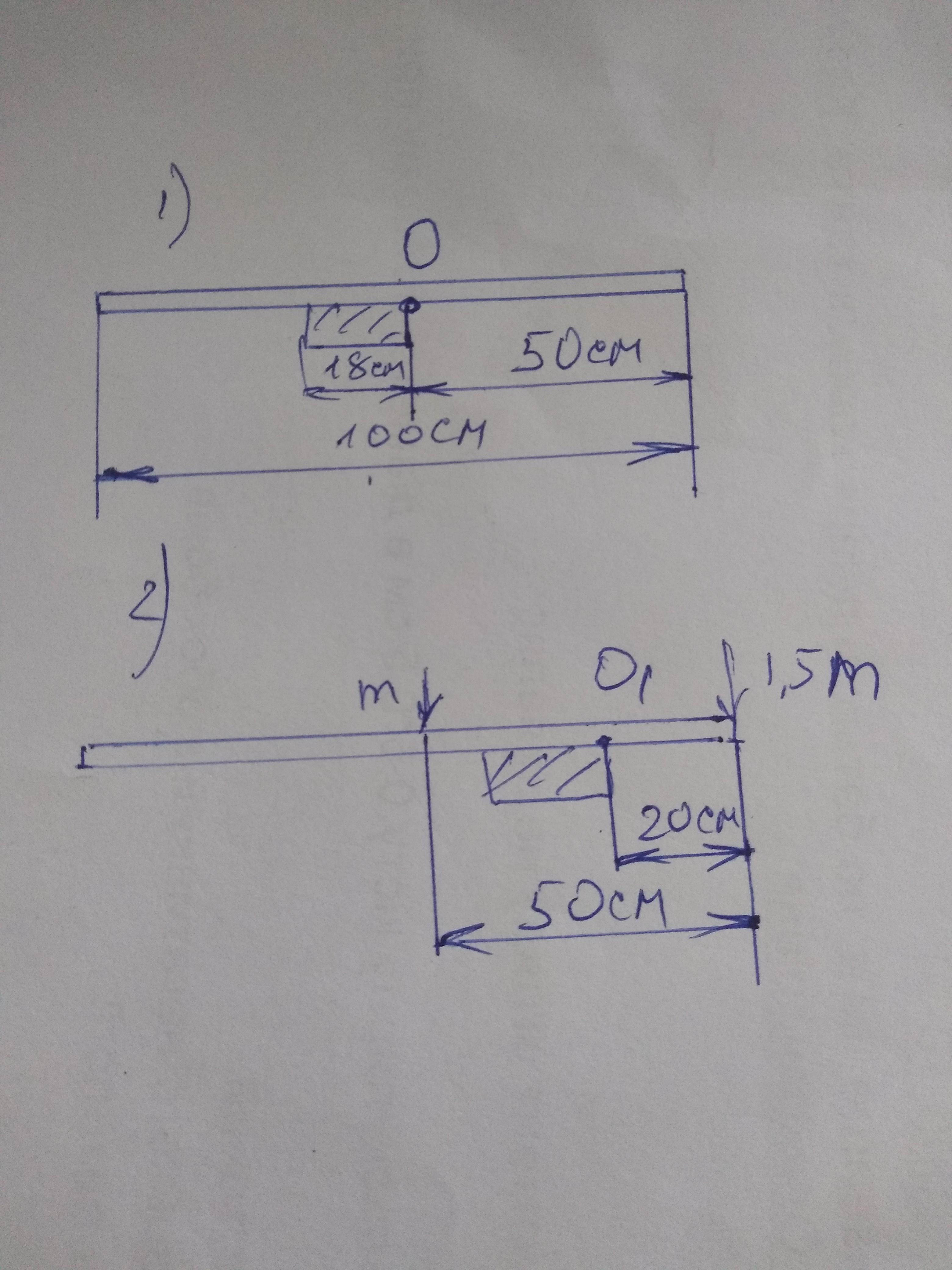 1) Равновесие наступит при равных плечах 50 см, считая от точки О