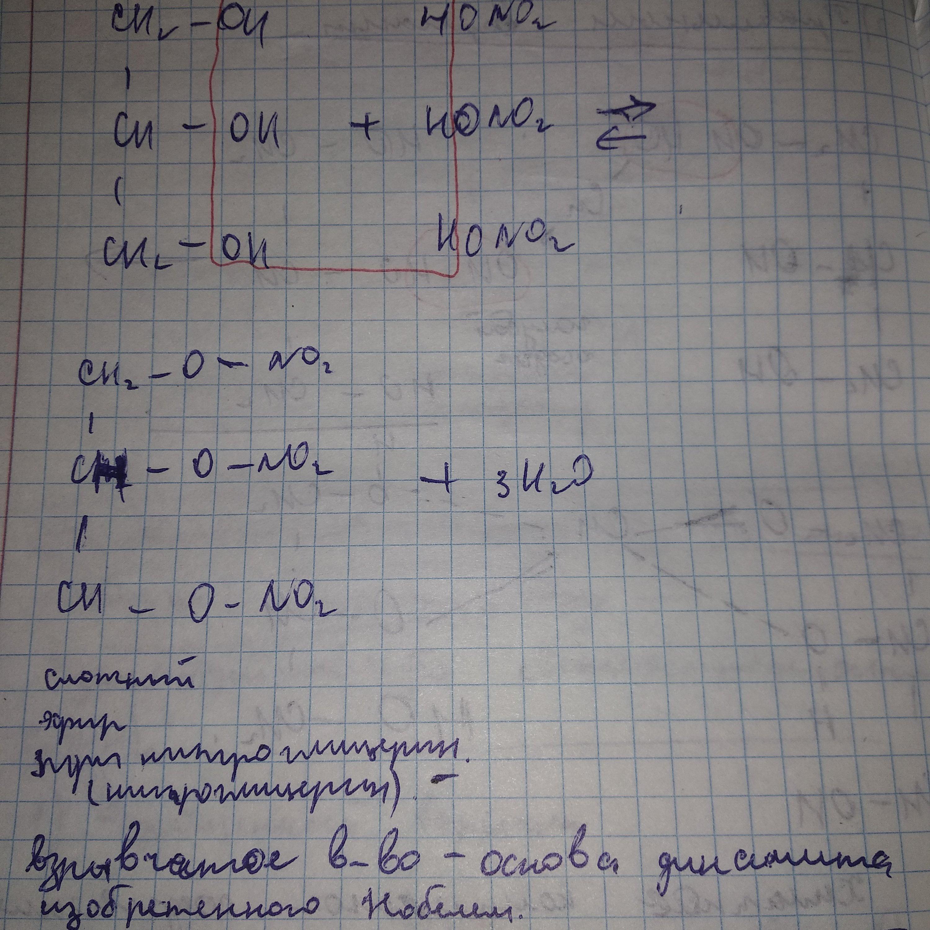 Эта реакция обратима, на 1 молекулу глицерина требуется 3 молекулы азотной кислоты.
