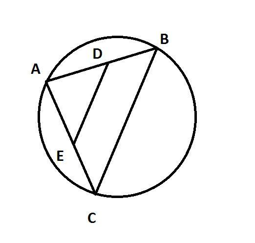 отрезок DE соединяющий середины хорд является средней линией треугольника ABC
