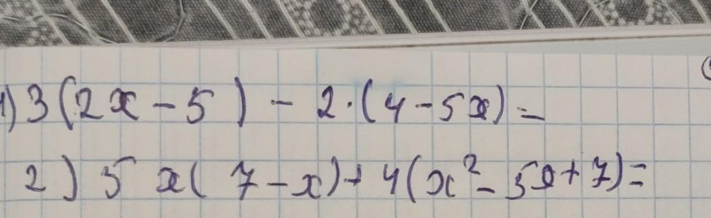 2) 5х(7-х) + 4(х² - 5х + 7)=