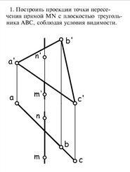 построить Проекции точки пересечения прямой MN с плоскостью треугольника ABC соблюдая условия видимости