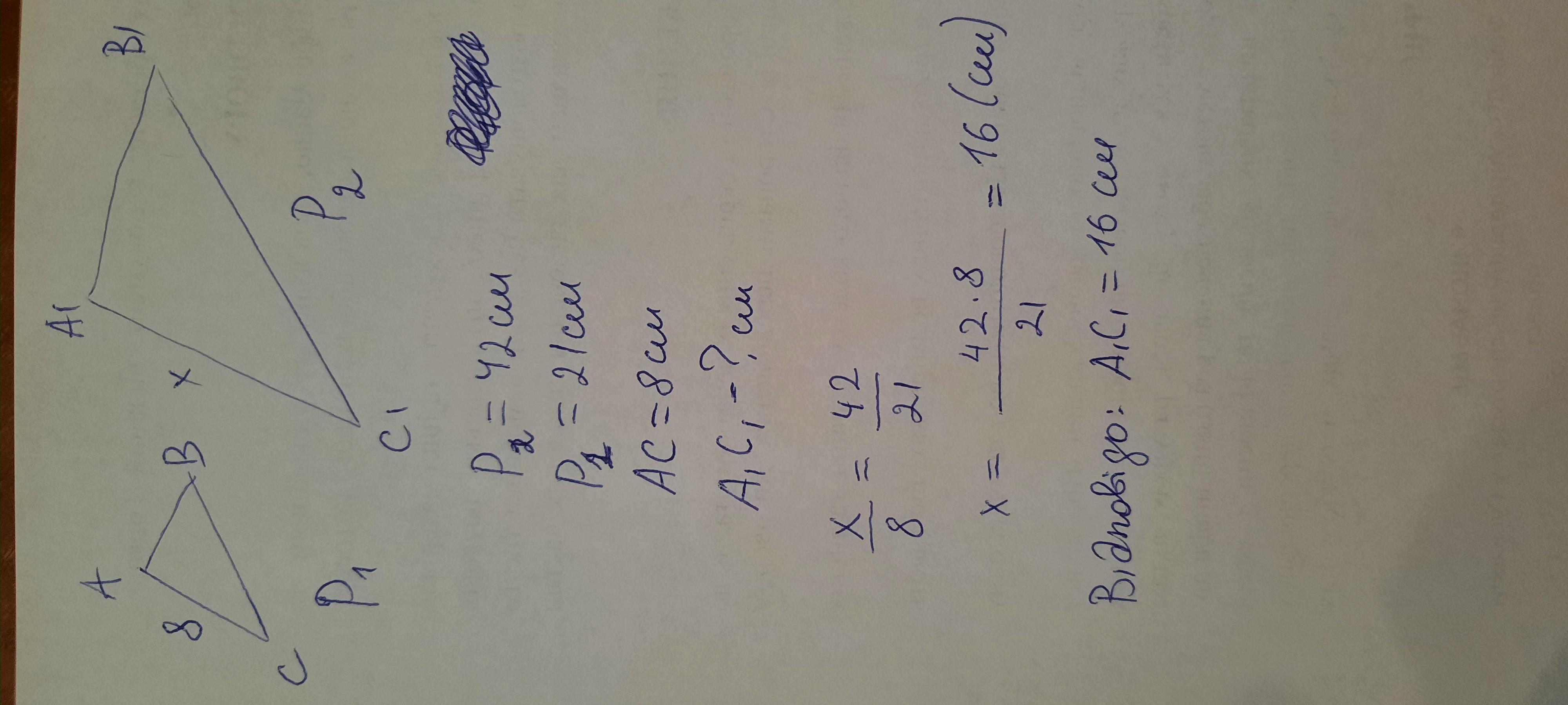 Периметри подібних трикутників дорівнюють 42 см і 21 см. Одна сторона меншого