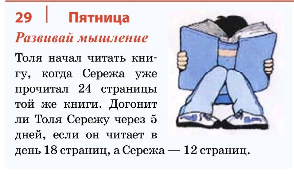 3) в итоге Толя прочитал больше страниц, чем Серёжа, значит догонит