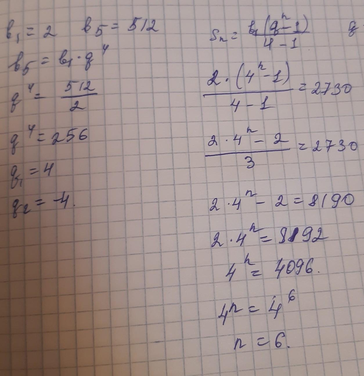 Перший член геометричної прогресії (b) дорівнює 2, а п'ятий 512. Скільки членів