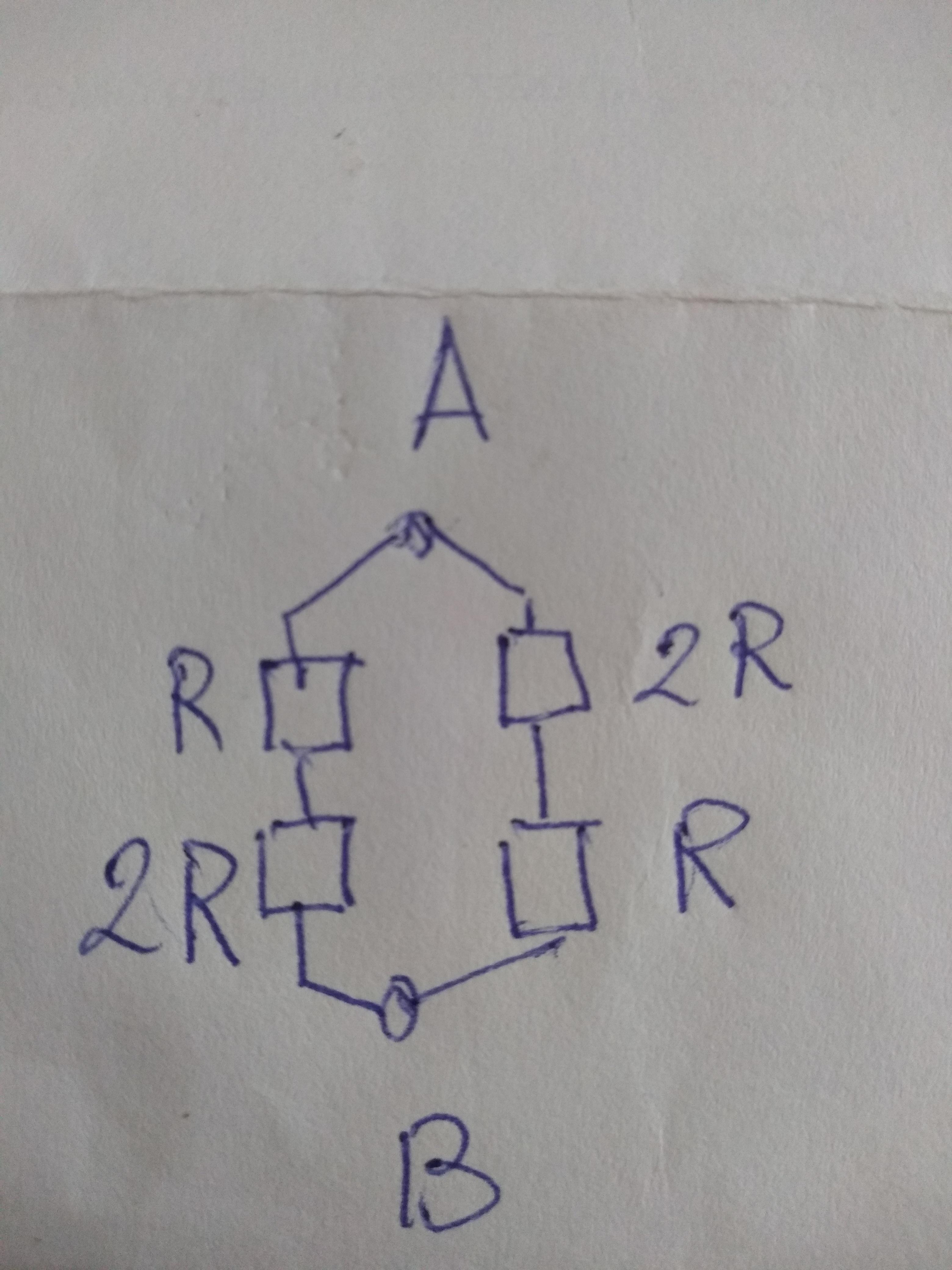 Из идеального источника напряжения и четырех резисторов собрана цепь, схема которой представлена на рисунке. Когда между клеммами A и B подключили идеальный вольтметр, он показал напряжение U = 4 В. Когда вместо вольтметра подключили идеальный амперметр, его показания составили I = 30 мА. Затем вместо амперметра между клеммами A и B подключили еще один резистор сопротивлением R. Найти силу тока через этот резистор.