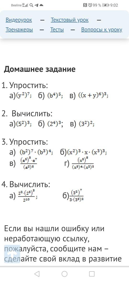 3) a) (b²)⁷ * (b³)⁴=b¹⁴ * b¹²=b¹⁴⁺¹²=b²⁶;