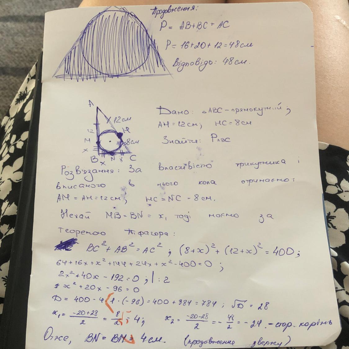 відрізки 8 см і 12 см. Знайдіть периметр трикутника.