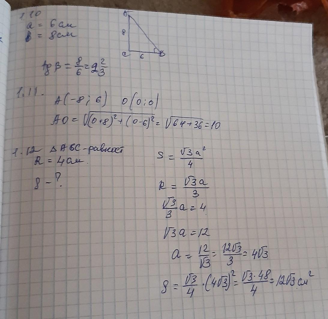 Расстояние от точки А до начала координат находим по теореме Пифагора: √(-8)²+6²=√64+36=√100=10