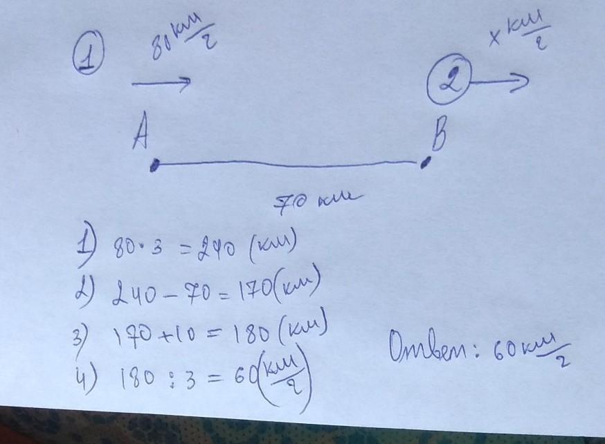 -----> 80 км/ч t = 3 ч -----> х км/ч