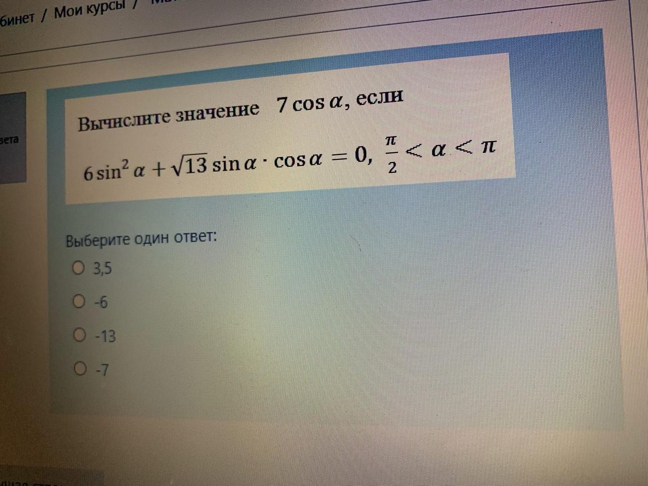 Поскольку: pi/2 <a <pi , то sin(a)≠0, а значит на него можно поделить обе части уравнения: