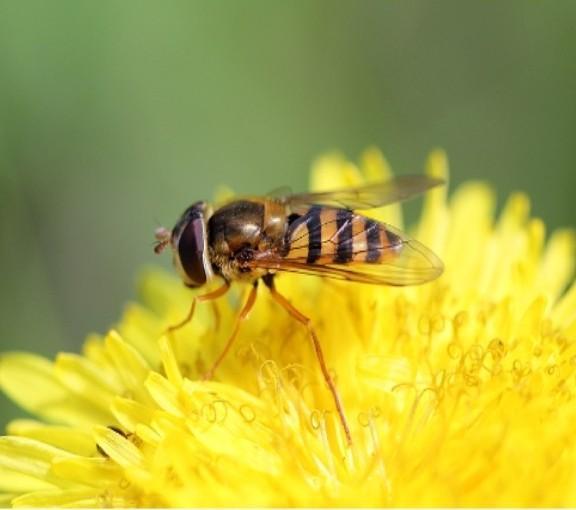 Муха журчалка своей окраской и внешностью имитирует ос и пчел, таким образом защищает себя. Этот тип приспособленности называется мимикрией.
