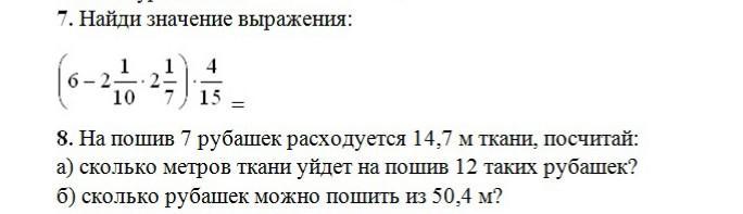 8. На пошив 7 рубашек расходуется 14,7 м ткани, найти: