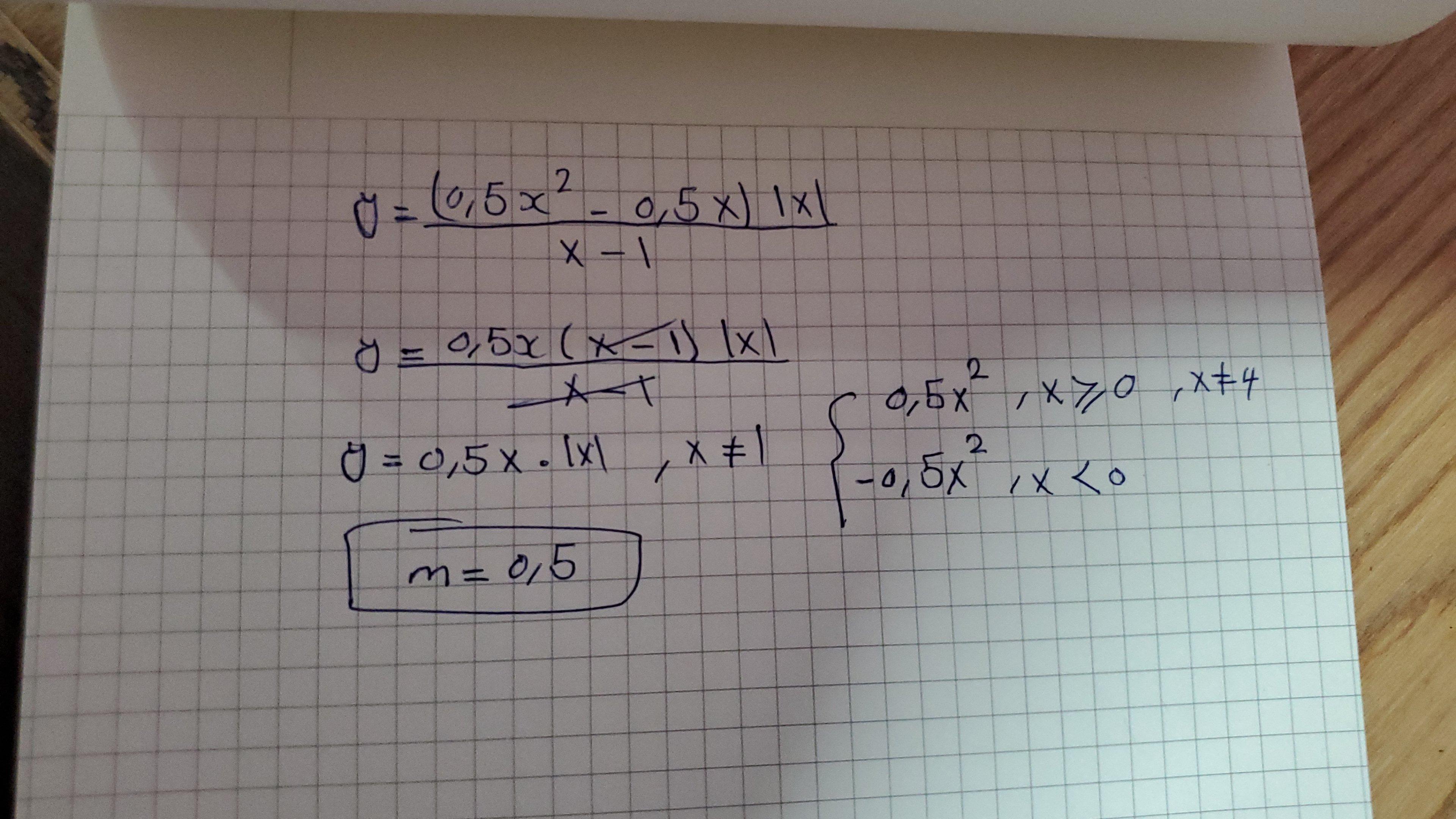 Постройте график функции у=(0,5х^2-0,5х)|х|/х-1 и определите, при каких значениях м прямая у=м не имеет с графиком ни одной общей точки.