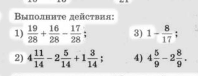 1) 4. 11/14 - 2. 5/14 = 2. 6/14