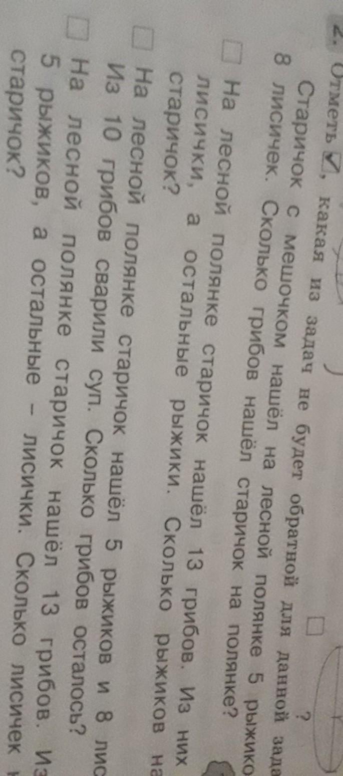 Старичок с мешочком нашёл на лесной полянке 5 рыжиков и 8 лисичек. Сколько грибов нашёл старичок на полянке?
