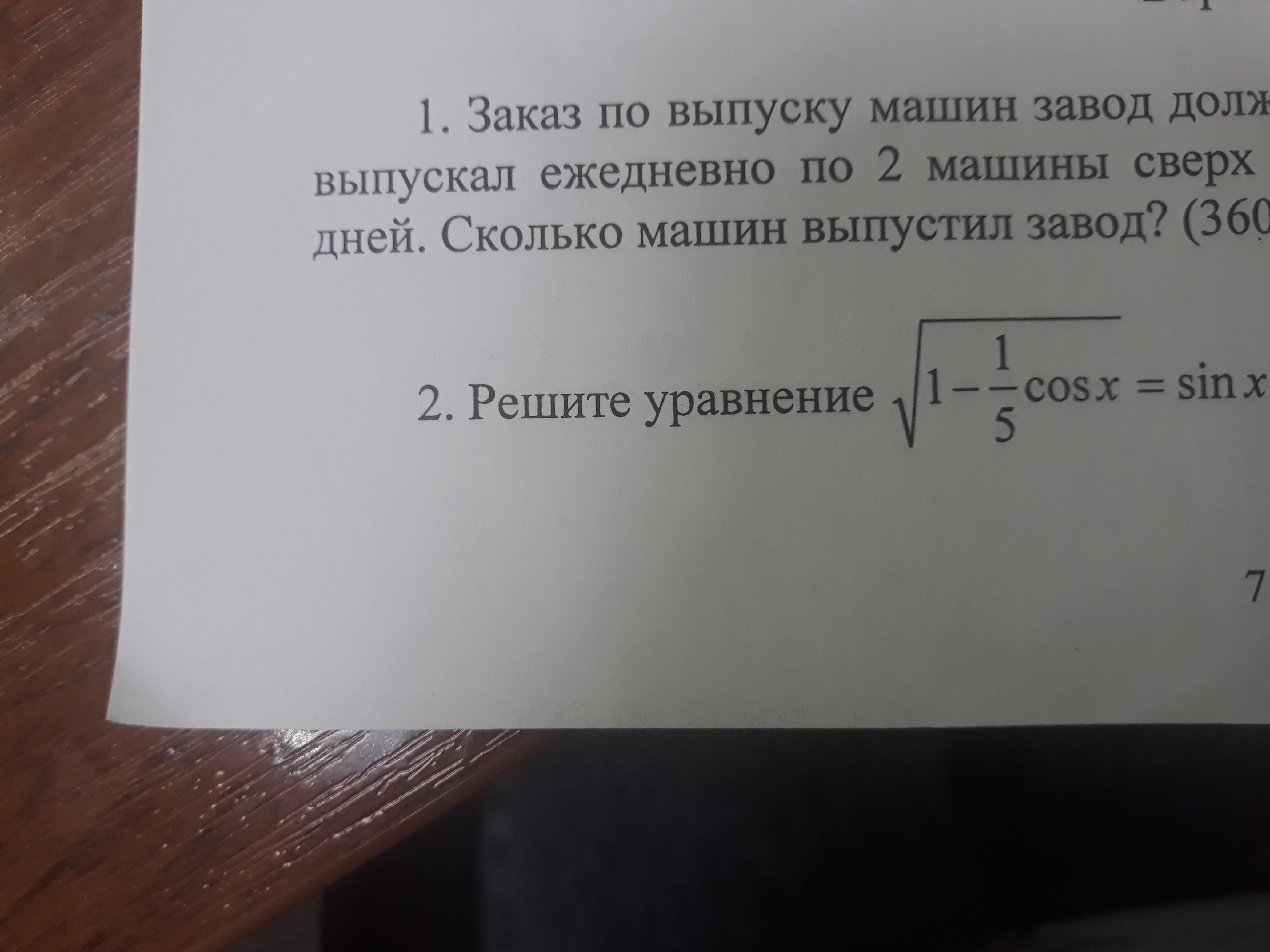2 . √( 1 - 1/5 cosx ) = sinx ;