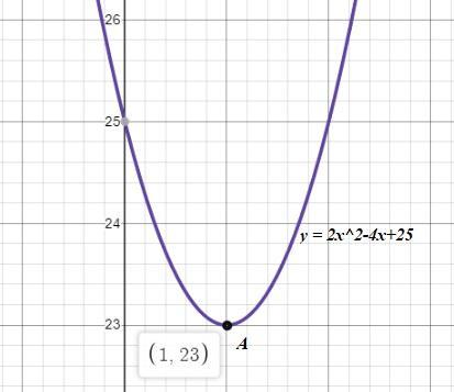 y=2*1^2-4*1+25 = 2-4+25=23 - ордината вершины параболы