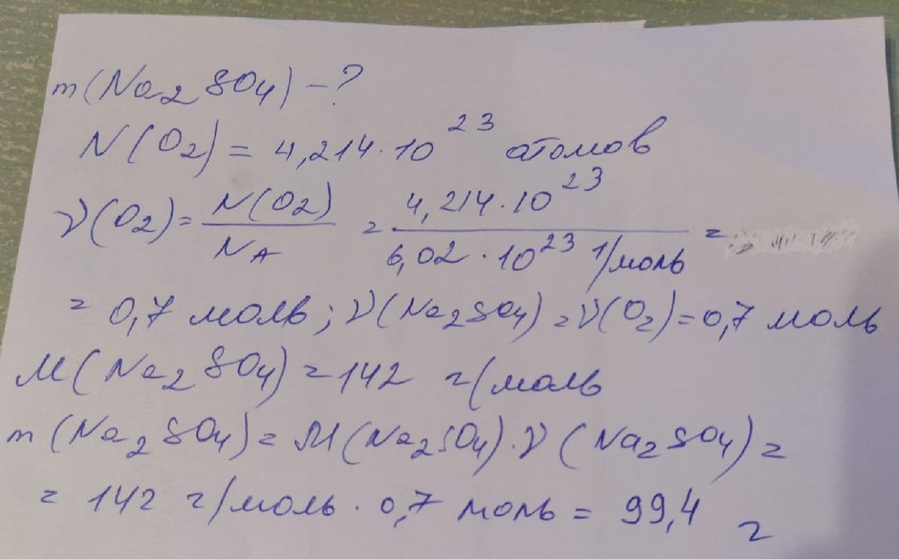 - n=4.24×10²³/6.02×10²³=0.7моль