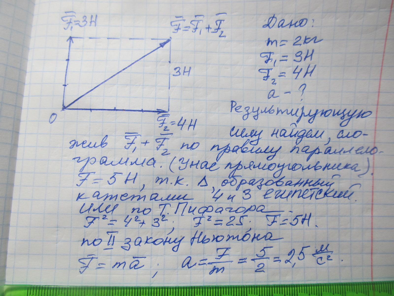 = 4H. Определите ускорение тела, если силы перпендикулярны к друг другу.