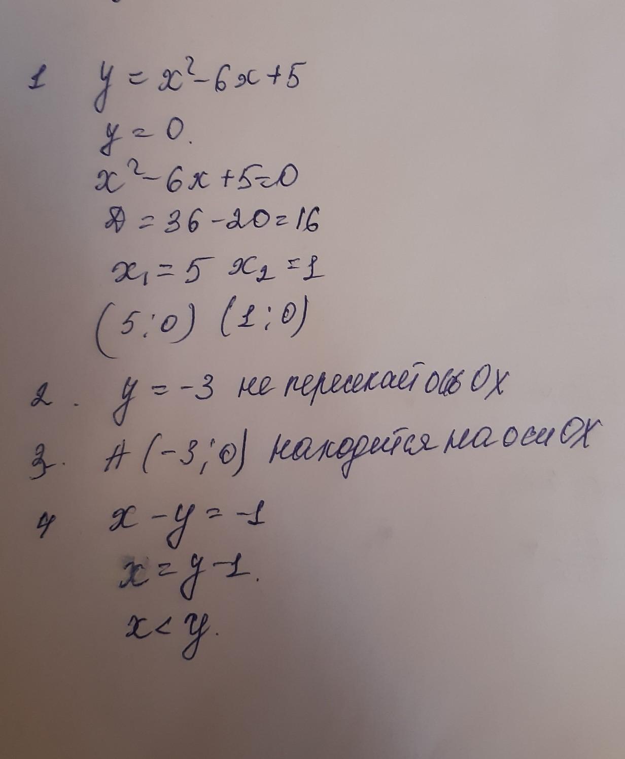 1.знайдіть координати точок перетину параболи y=x2-6x+5 з віссю ординат